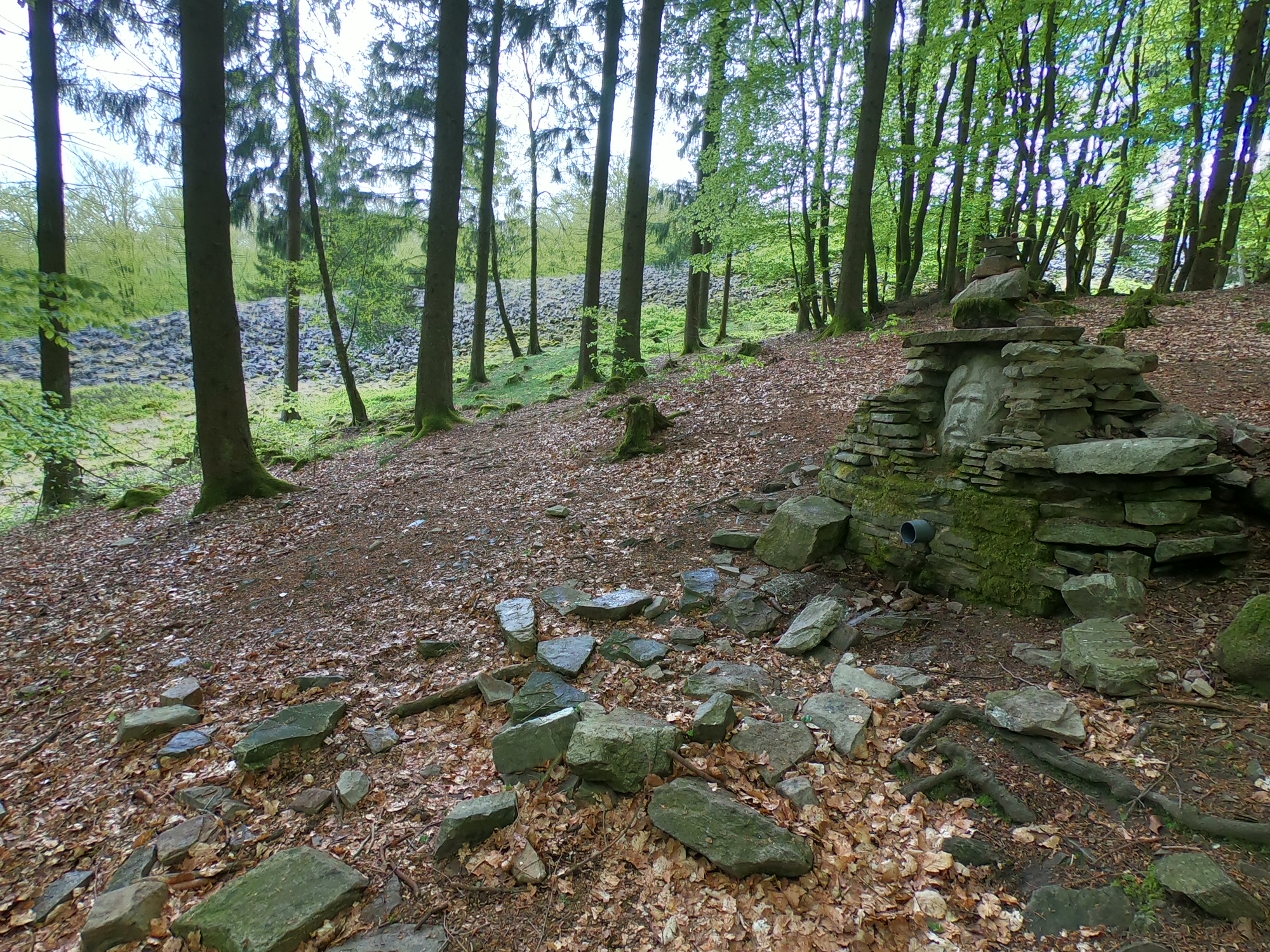 Die Dollbergschleife führte uns also mitten durch die Höhenbefestigung, praktisch genau auf die Spuren unserer Vorfahren. Auf der anderen Seite des Walls passierten wir dann anknüpfend noch das Tor der Befestigung und kamen an der Hunnenring-Quelle vorbei. Durch den Hochwald ging es schließlich auf den Dollberg. Über den Kamm führte der Weg an alten Grenzsteinen vorbei und zurück zur Köhlerhütte, wo der Camper auf uns wartete, bereit auf die nächste Etappe unseres Trips durch den Hunsrück und die Eifel.